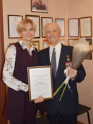 Она пожелала юбиляру крепкого здоровья, долгих лет жизни, бодрости духа, мирного неба над головой и вручила цветы и памятный подарок.