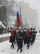 После завершения церемонии оркестр исполнил гимн Российской Федерации, а затем почетный караул прошел торжественным маршем.