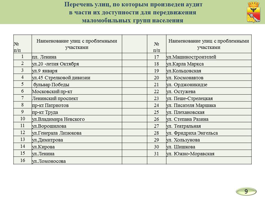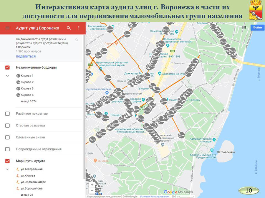 Главой города поставлена задача устранить все препятствия для движения маломобильных групп горожан на главных улицах Воронежа. Также за 2020 год должен быть проведен аудит следующих улиц и запланированы мероприятия на будущие годы.
