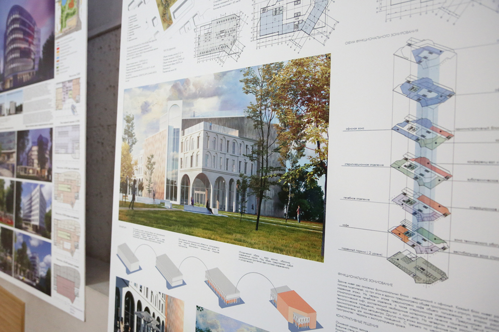 Финальное мероприятие, где были определены лучшие проектные предложения по объёмно-пространственному решению проекта медико-оздоровительного центра и благоустройства парковой зоны (ул. Транспортная, 5), прошло в Доме архитектора. До начала награждения председатель жюри конкурса, помощник губернатора Воронежской области Константин Кузнецов показал главе Воронежа планшеты с проектами и рассказал о работах, представленных на суд жюри.