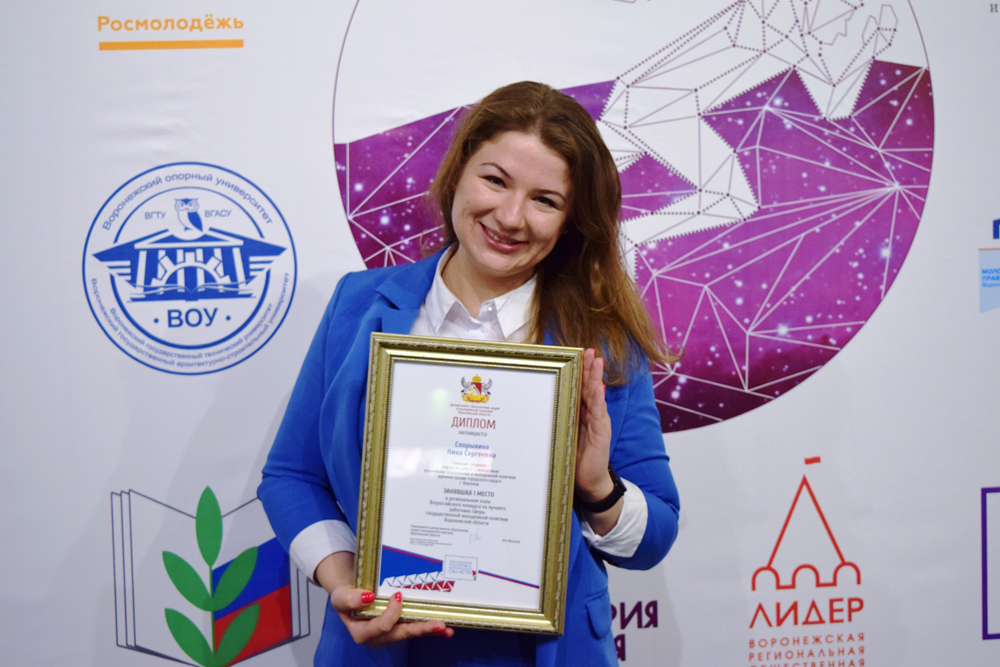 По итогам конкурсного отбора Спорыхина Нина Сергеевна – главный специалист отдела по работе с молодежью управления образования и молодежной политики администрации Воронежа заняла I место в номинации «Специалист органа местного самоуправления муниципального образования, реализующего государственную молодежную политику». Это вторая победа Нины Сергеевны в данном конкурсе.