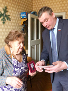 Далее Сергей Александрович вручил ветеранам юбилейные медали.