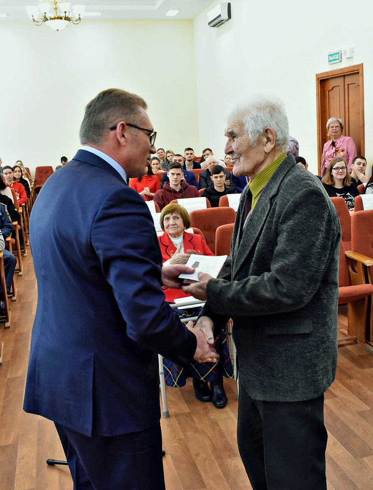 Далее Сергей Александрович вручил ветеранам юбилейные медали.