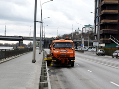 Для проведения этих работ задействована различная техника: фронтальные погрузчики, трактора со щетками, самосвалы и другая специализированная техника. На тротуарной части комбинатом благоустройства Левобережного района используется малогабаритная подметальная техника.