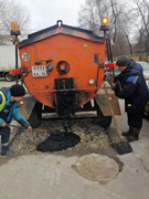 Основные усилия в настоящее время направлены на уборку пескосмета с проезжей части, тротуаров и мусора с газонной части улиц, а также ремонт улично-дорожной сети литым асфальтом.