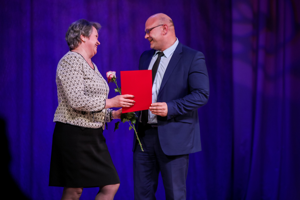 Собравшихся также поздравили представители регионального правительства, областной и городской Дум, вручив грамоты и благодарности. Свои музыкальные подарки участникам мероприятия преподнесли творческие коллективы. Среди них, ансамбль танца «Радуга», ансамбль скрипачей «А-соль» и другие исполнители.
