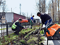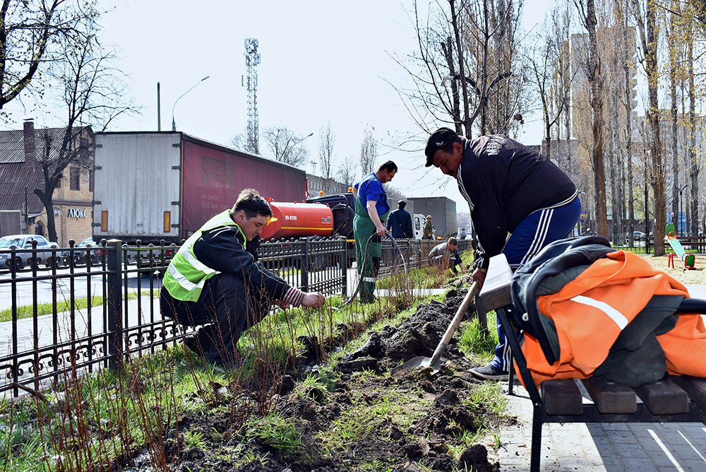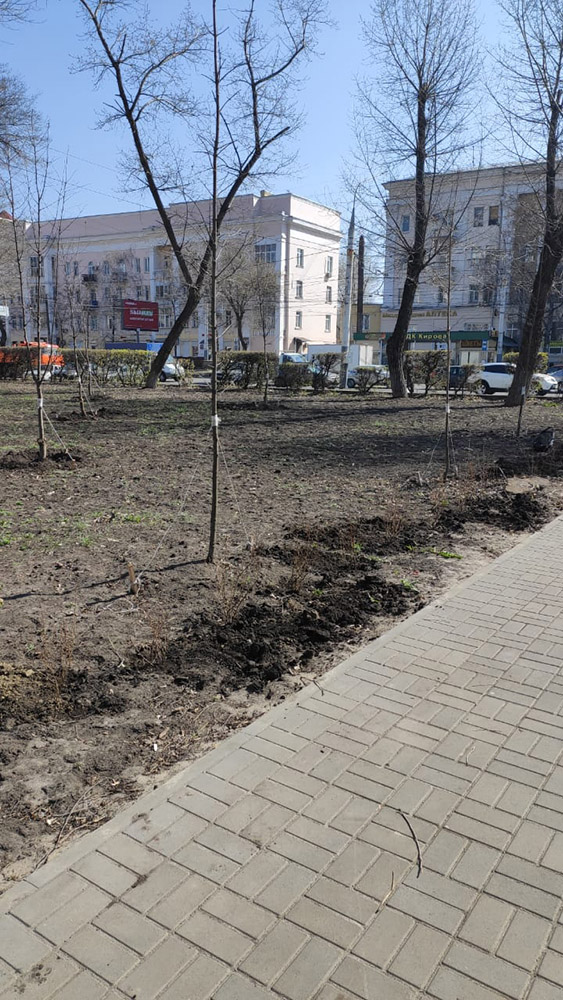 В Железнодорожном районе в рамках работ по озеленению началась высадка саженцев кустарников.