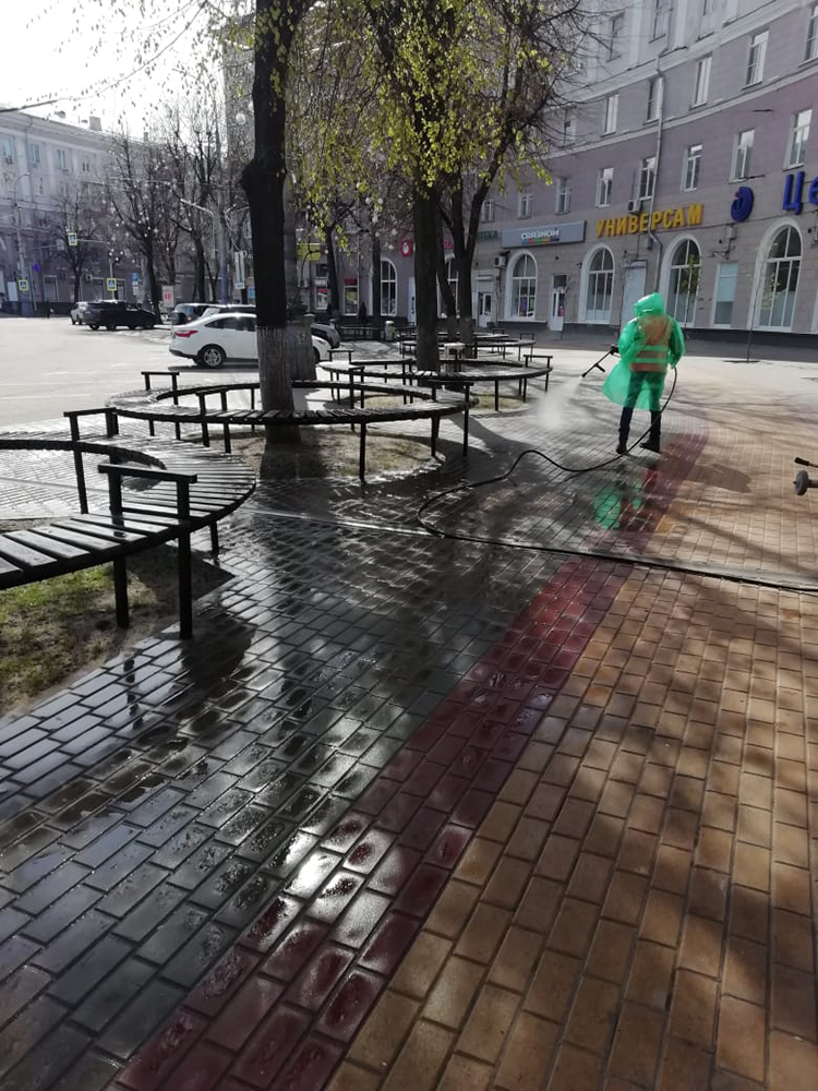 – Чтобы приготовить дезинфицирующее средство, в наполненную водой поливомоечную машину объемом 10 кубометров добавляют 250 литров действующего вещества. В такой концентрации средство безопасно для человека, экологии и обладает не таким едким запахом, как обычная хлорка. При этом его бактерицидные свойства сохраняются, – рассказал директор по производству «РВК-Воронеж» Дмитрий Дедов.