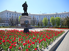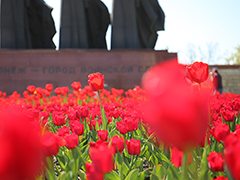 Ко Дню Победы 6 мемориальных комплексов будут украшать красные тюльпаны, луковицы которых были высажены ещё в прошлом году. Речь идёт о мемориалах «Песчаный лог», Чижовский плацдарм, пл. Черняховского, пл. Ленина, сквер «Аллея Славы» и парк «Патриотов».