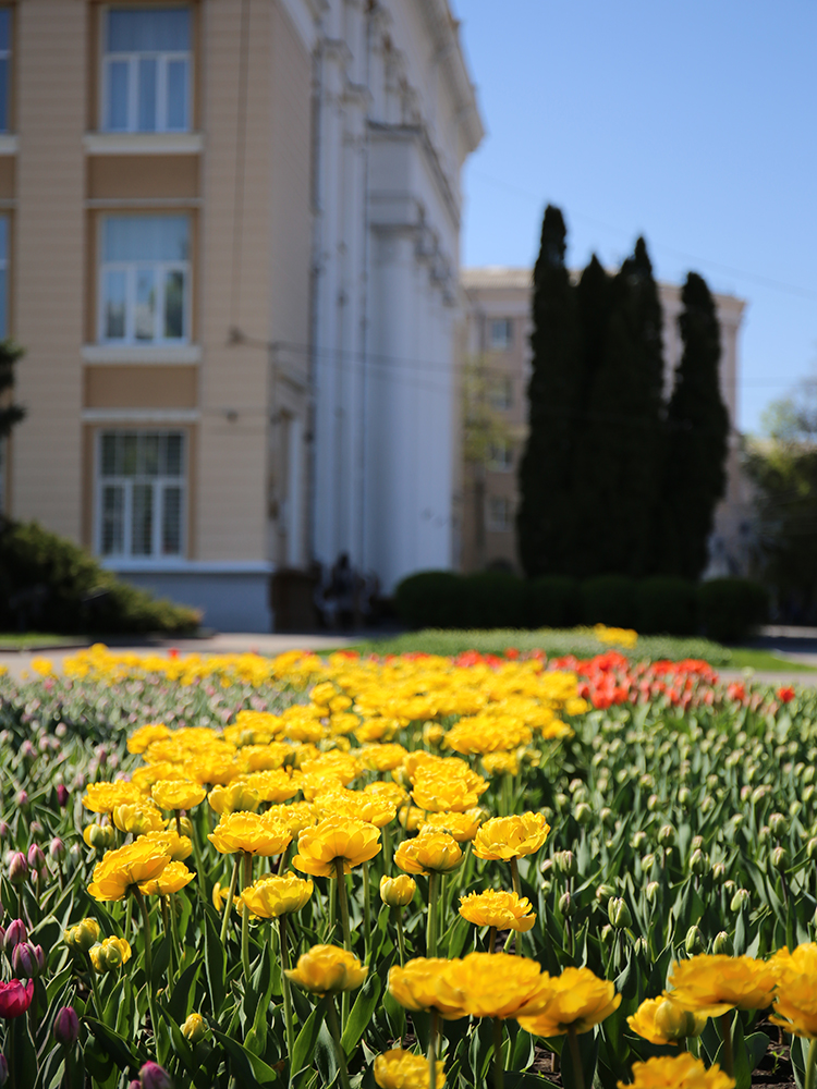 Также для эффекта раннего цветения впервые выполнена посадка разноцветных тюльпанов на клумбах в сквере им. Бунина (у библиотеки им. Никитина) и на транспортном кольце у Воронежского государственного университета.