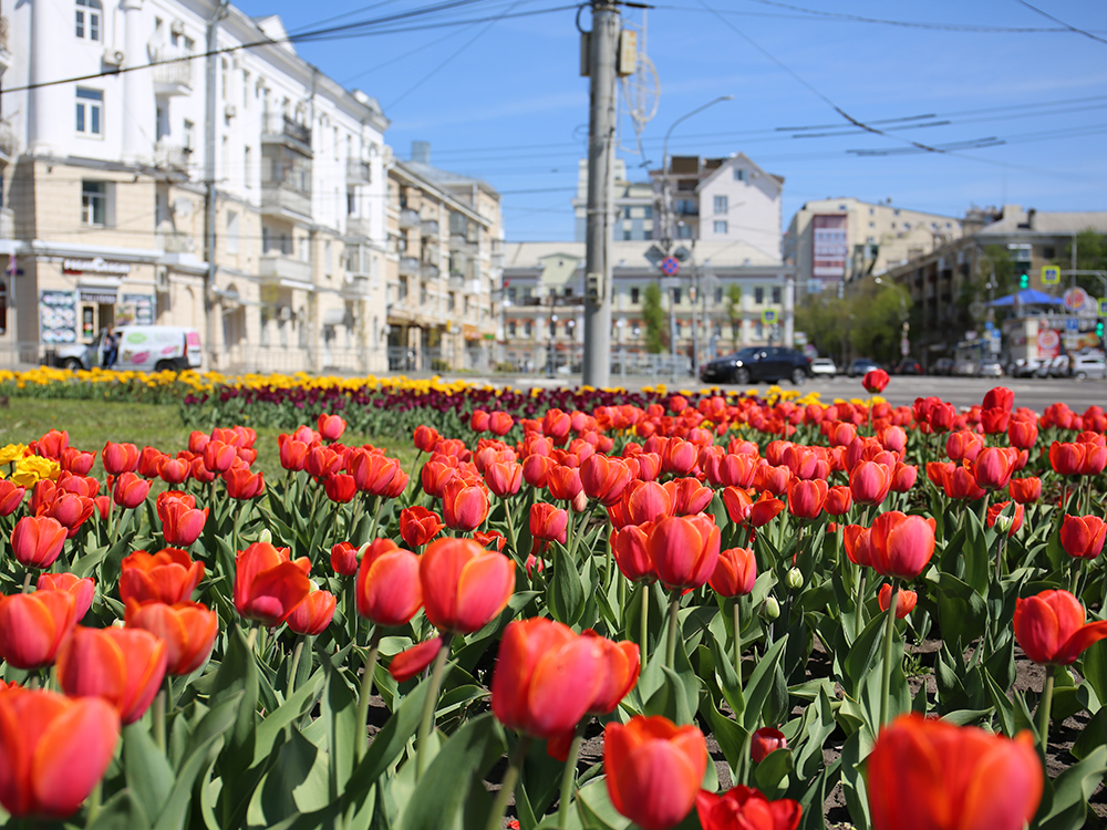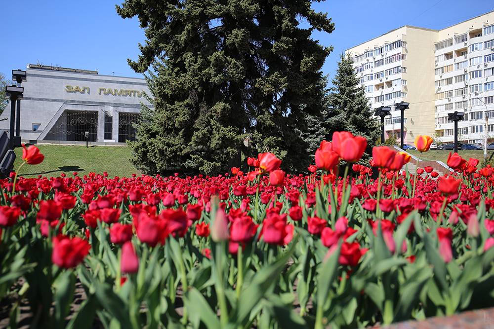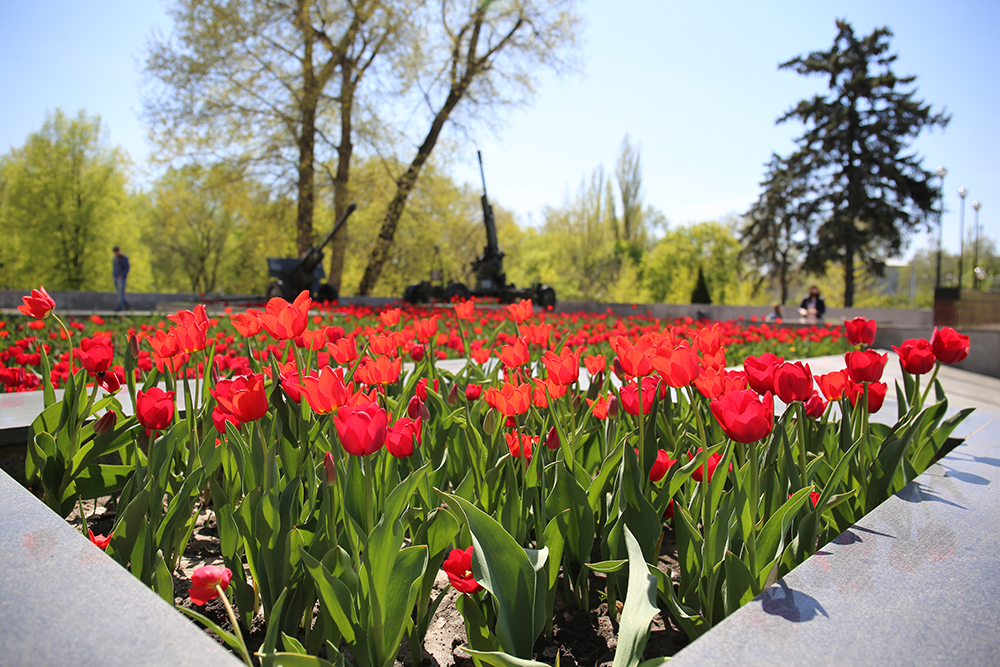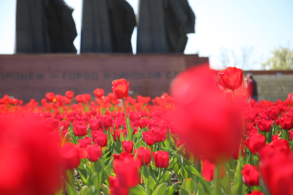Ко Дню Победы 6 мемориальных комплексов будут украшать красные тюльпаны, луковицы которых были высажены ещё в прошлом году. Речь идёт о мемориалах «Песчаный лог», Чижовский плацдарм, пл. Черняховского, пл. Ленина, сквер «Аллея Славы» и парк «Патриотов».