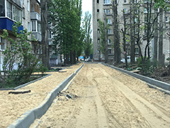 На Калининградской завершены подготовительные работы- разборка изношенных бортовых камней и асфальтобетонного покрытия. Установлен новых борткамень и завершено устройство подстилающих и выравнивающих слоев тротуаров.