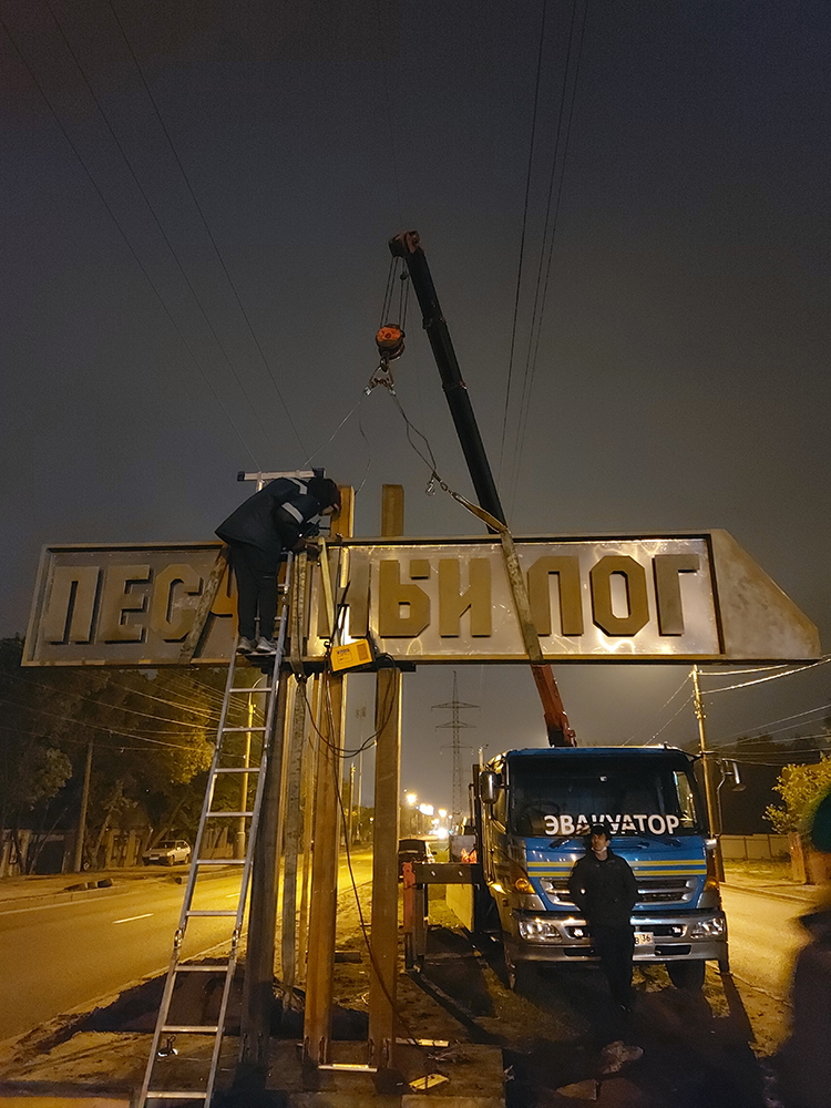 – Мы максимально попытались защитить стелу от влияния дождей – на верхней части сделана небольшая отбортовка, не позволяющая воде, которая может проникнуть в швы, течь на нержавейку. В таком случае вода будет идти по задней стенке и вытекать через специальные отверстия. Все элементы, которые могут пропускать воду, установлены через герметичные соединения, сами буквы углублены от внешнего края почти на 2 см. Таким образом повышены эксплуатационные качества знака, – сообщил Сергей Бакшутов.
