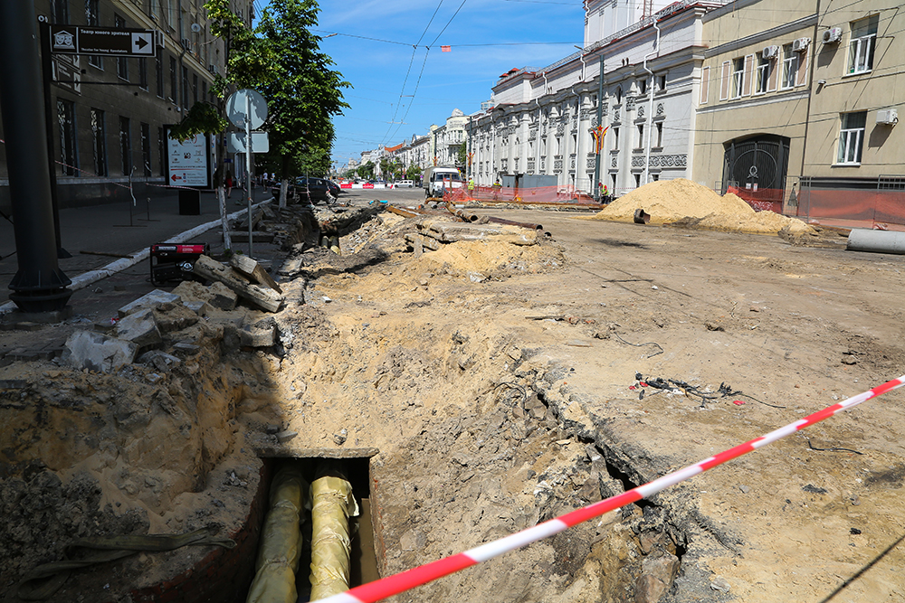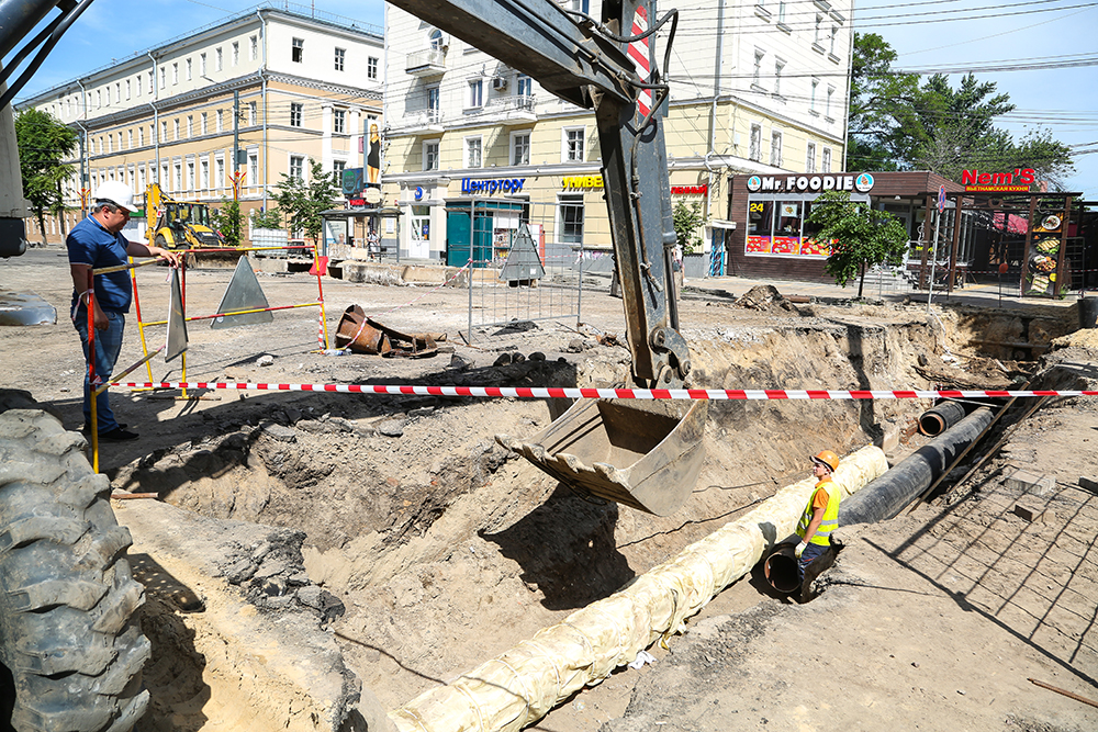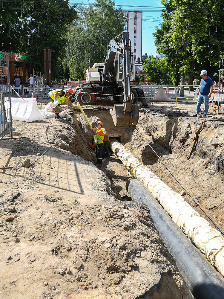 Напомним, что движение на участке проспекта от улицы Степана Разина до улицы Карла Маркса закрыто в связи с проводимыми работами с 0:00 1 июня до 23:59 20 июня. Теплоснабжающая организация ведёт замену тепловых сетей в трёх местах – у дома №58 («Утюжок»), а также в районе пересечений с улицами 25 Октября и Пятницкого. О ходе работ на коммуникациях Сергею Петрину доложил представитель ПАО «Квадра – Генерирующая компания». По его словам, на всех трех участках уже до конца недели должны быть полностью завершены работы по монтажу новых труб, устройству перекрытий и лотков, после чего можно будет приступать к засыпке разрытия и устройству конструктива.