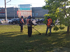 Силами комбината благоустройства Левобережного района осуществляется механизированная уборка улично-дорожной сети (подметание и полив) в круглосуточном режиме.Ведется активная работа по уборке бытового мусора с обочин и газонной части вдоль магистральных улиц района, прилотковой зоны и т.д., осуществляется распил упавших деревьев и ремонт тротуаров.