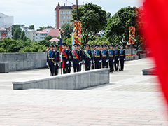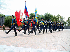 В завершение церемонии военный оркестр исполнил гимн Российской Федерации, а затем почетный караул прошел торжественным маршем.