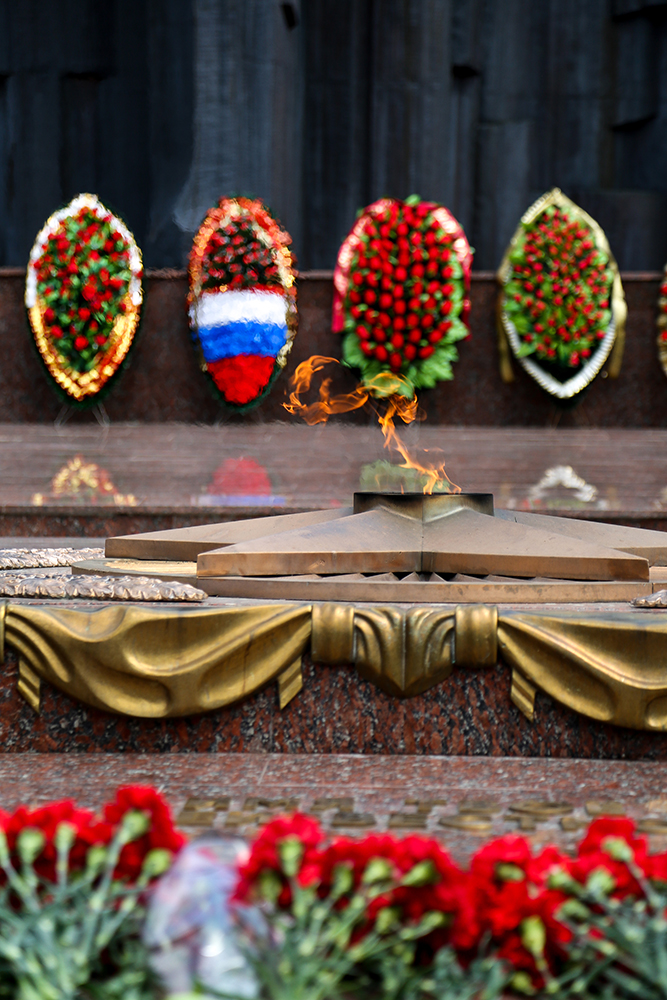 Собравшиеся возложили к мемориалу венки и алые гвоздики – один из символов памятной даты. Затем они почтили память погибших солдат и офицеров минутой молчания.