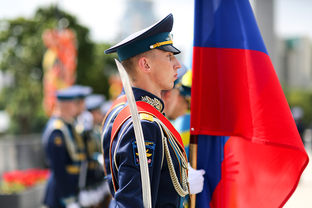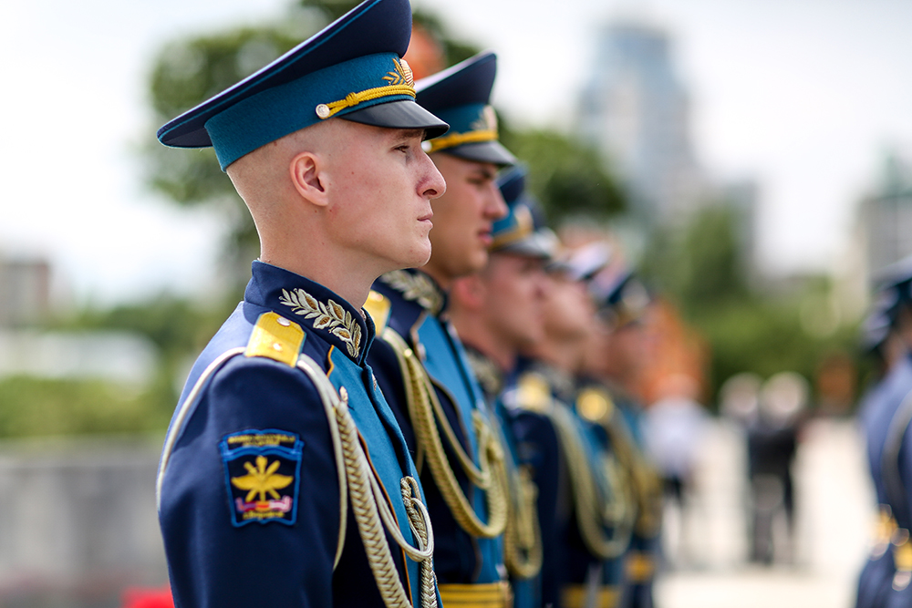 В завершение церемонии военный оркестр исполнил гимн Российской Федерации, а затем почетный караул прошел торжественным маршем.