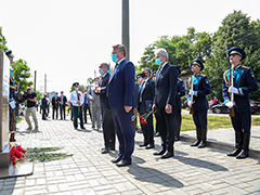 Церемония началась с возложения цветов к памятному знаку «Ротонда – руины областной больницы, разрушенной во время боев за Воронеж в 1942-1043 годах», у которого выстроился почетный караул курсантов Военно-воздушной академии. Затем начался митинг памяти.