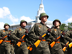 Завершил парад своим прохождением сводный оркестр воронежского гарнизона под управлением старшего лейтенанта Вадима Мунаева.