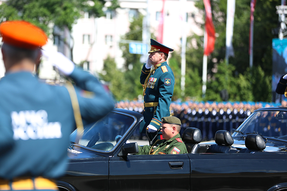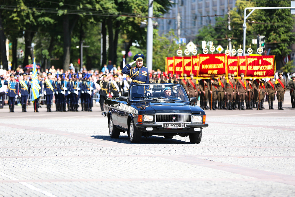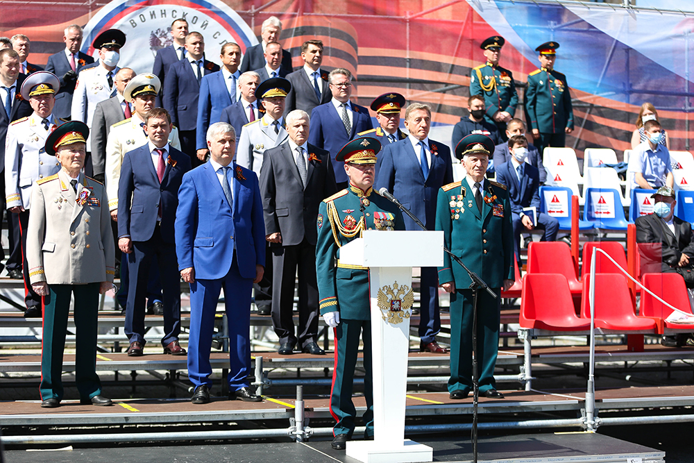 Командующий 20-ой Гвардейской Краснознамённой общевойсковой армией - начальник воронежского гарнизона генерал-лейтенант Андрей Иванаев в своем приветствии отметил подвиг советского народа в защите Родины и в борьбе с фашизмом в Европе.