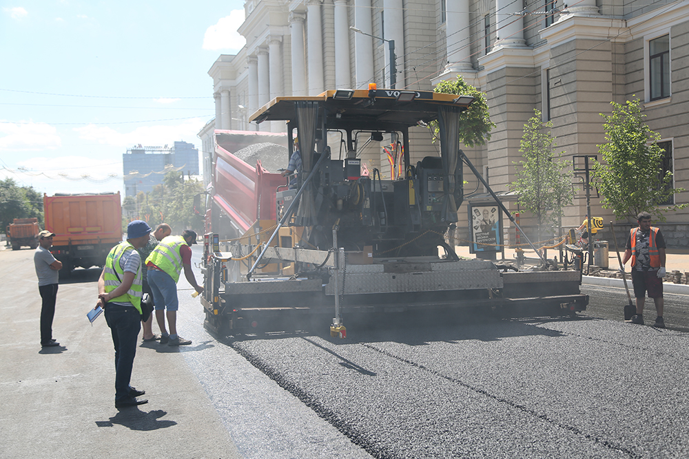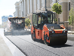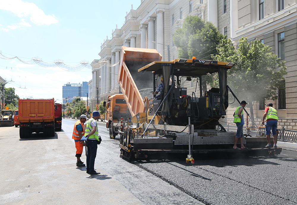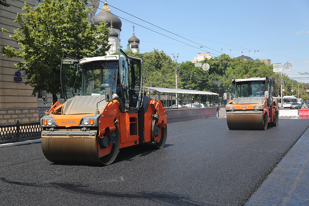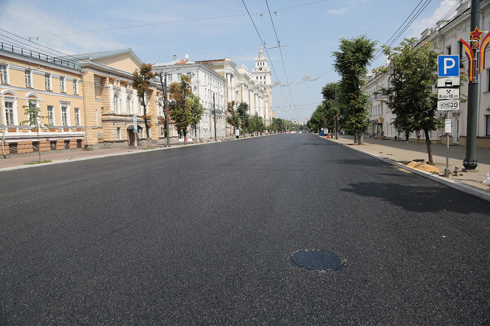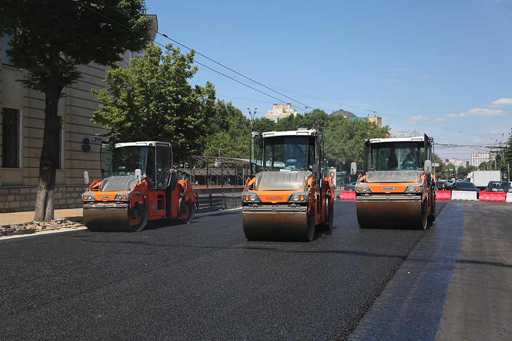 На перекрытом для движения участке проспекта Революции уложили верхний слой дорожного покрытия