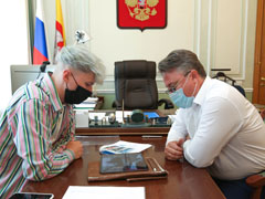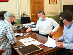 Ян Посадский представил Вадиму Кстенину три проекта, которые в будущем могут быть реализованы в городе: «Achtung minen!», «Улыбка» и «Река Воронеж».