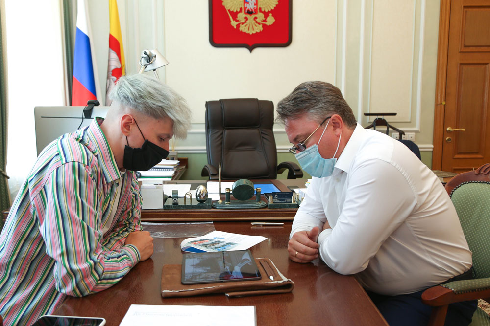 Глава Воронежа Вадим Кстенин встретился с уличным художником Яном Посадским