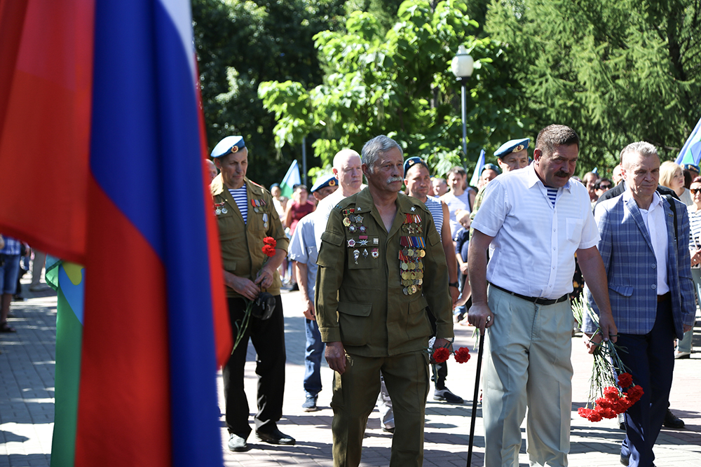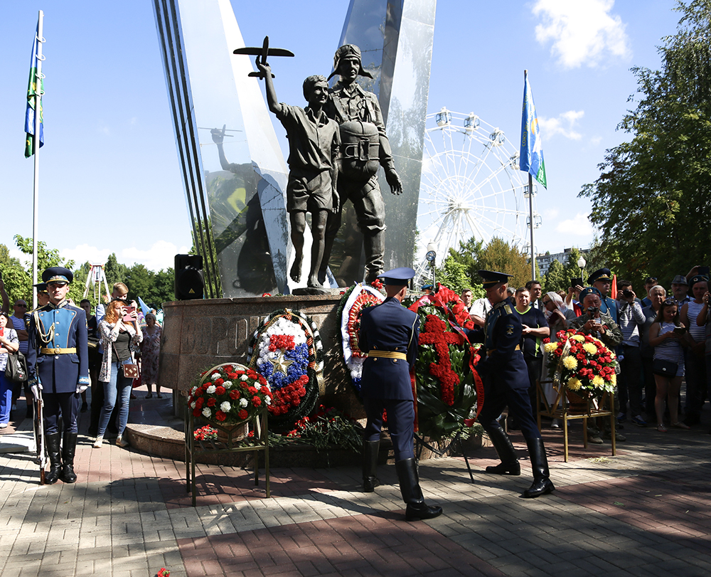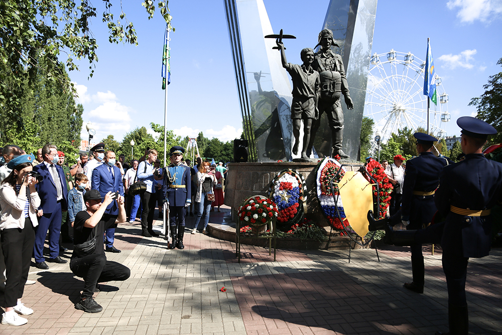В честь праздника в парке Победы у памятника «Воронеж – родина ВДВ» состоялась церемония возложения цветов и венков.