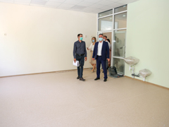 Осмотр детского сада глава города начал с будущих групповых комнат и хозяйственно-бытовых помещений – они расположены на первом этаже пристройки.