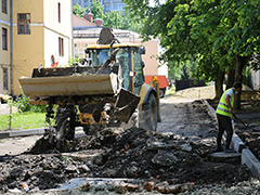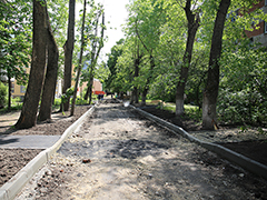 В первом же дворе, который посетил мэр (Политехнический переулок, 37) кипела работа. Завершена укладка асфальта на тротуары, установлены бордюры, ведется подготовка к обустройству основания для проезжей части, также во дворе появится детская площадка.
