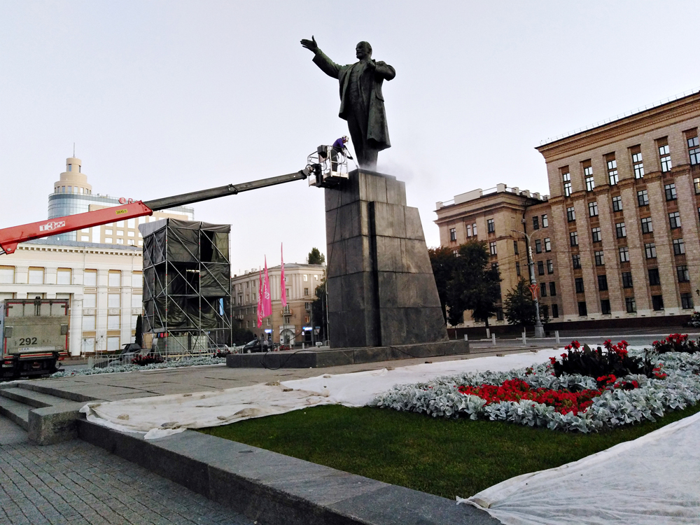 На главной площади Воронежа привели в порядок памятник В.И. Ленину.