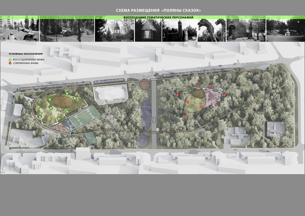 – Понятно, что мы не сможем восстановить весь масштабный комплекс сооружений, которые там были, но раз сохранились и эскизы, и фотографии, то над этим стоит поработать. Можно детально воссоздать несколько ключевых фигур, другие творчески переосмыслить, а часть сделать совершенно новых, но тоже на основе наших сказок, – подчеркнул глава города.