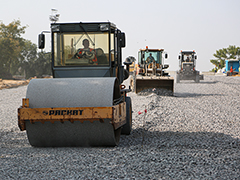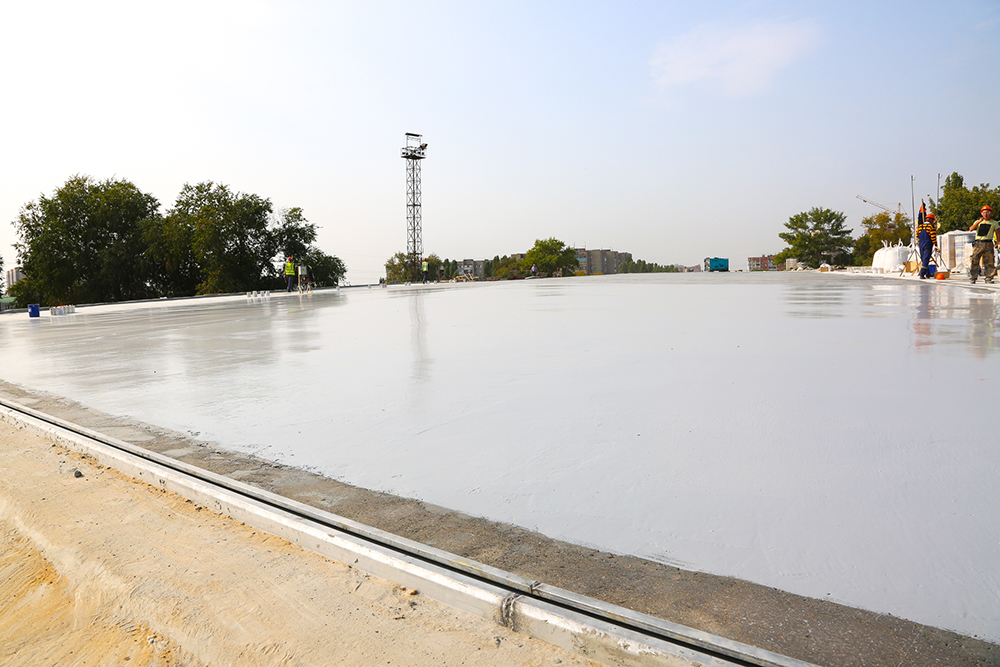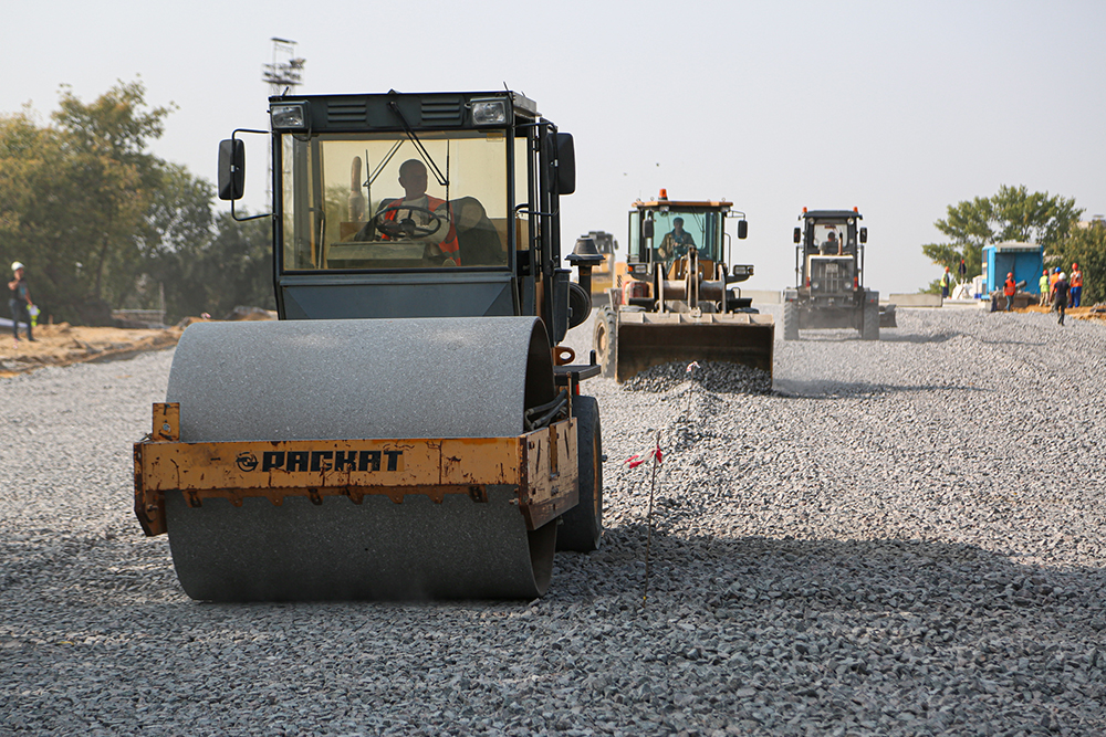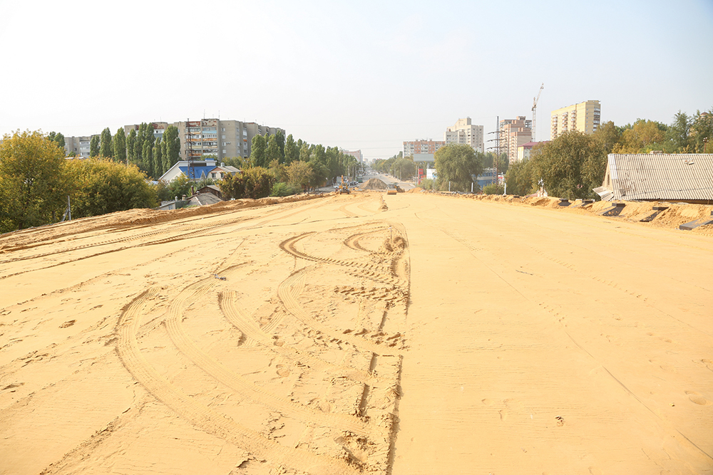 Он добавил, что в настоящее время продолжаются работы по устройству песчано-подстилающего слоя на подходе к сооружению со стороны крайней опоры №1, ведётся устройство щебёночного основания на подходе со стороны крайней опоры №8. На самом сооружении подрядная организация сейчас выполняет работы по устройству гидроизоляции путепровода, а 29 сентября планируется начать укладку асфальтобетонного покрытия.