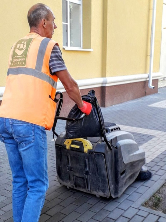 Специалисты районного комбината благоустройства с утра до вечера «утюжат» механическими пылесосами и щетками типа Tielbuerger поверхность городского пространства. Ночью действуют бригады ручной уборки.