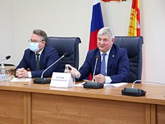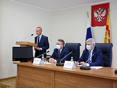 К участникам заседания обратился губернатор Воронежской области Александр Гусев, принимавший участие в организационном заседании. Он поздравил депутатов и председателя Владимира Ходырева с избранием, отметив большой опыт многих присутствующих в решении задач местного значения, и пожелал депутатам Думы работать столь же эффективно, как это делал ее прежний состав.