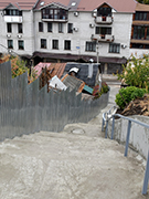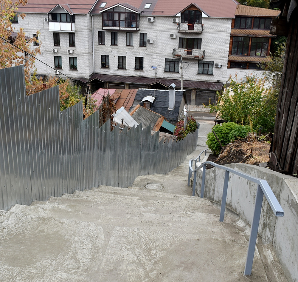 Подрядная организация произвела масштабные работы по планированию территории, демонтажу дикого камня, который на протяжении десятков лет являлся ступенями, разборку разрушенной подпорной стены, вывоз мусора и земли, выравнивание поверхности, армирование подпорной стены, заливку бетоном ступеней, установку ограждения и др.
