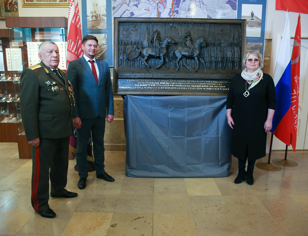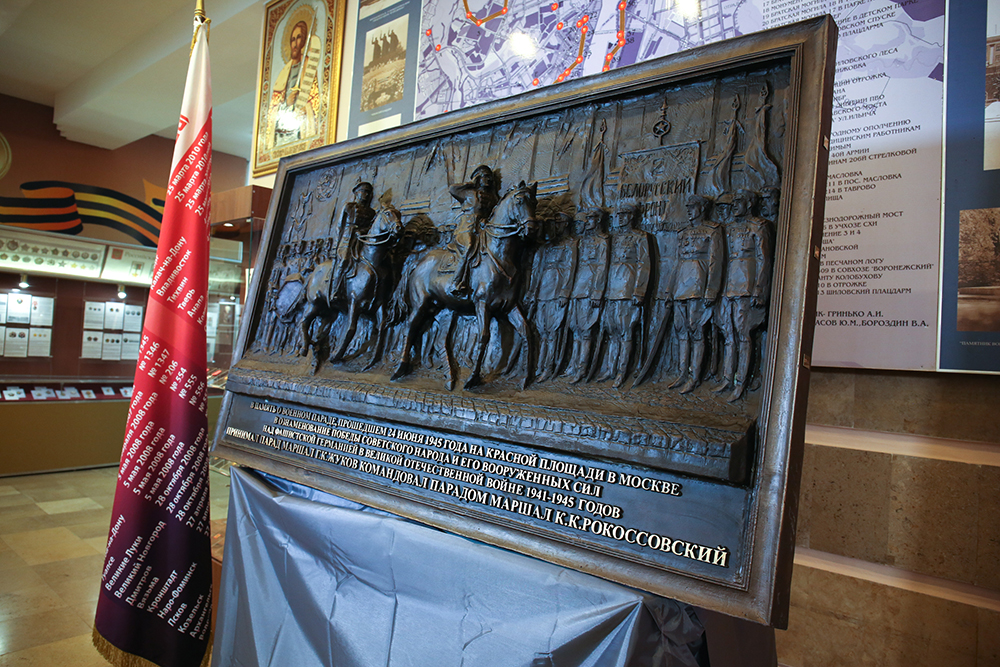 7 ноября в Москве, Воронеже и Самаре прошло памятное мероприятие, посвященное 75-летию Парада Победы в столице, а также годовщине военных парадов 1941 года.Три города посредством телемоста, который в Воронеже был организован в ЦПВП «Музей-диорама», объединились, чтобы почтить память наших соотечественников, погибших на фронтах Великой Отечественной войны. Центром мероприятия стала передача в дар городам идентичных друг другу мемориальных панно с изображением на горельефе принимающего Парад Победы маршала Советского союза Георгия Жукова и командующего Парадом маршала Советского союза Константина Рокоссовского.