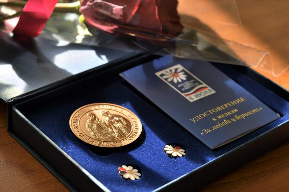 Медалью «За любовь и верность» наградили супружеские пары Ирины и Александра Абакумовых, Светланы и Вячеслава Барановых, Ирины и Сергея Ластович.Сотрудники управы района также поблагодарили пары от имени руководителя Олега Копытина за вклад в развитие и укрепление института семьи и брака, пожелали здоровья и долголетия.