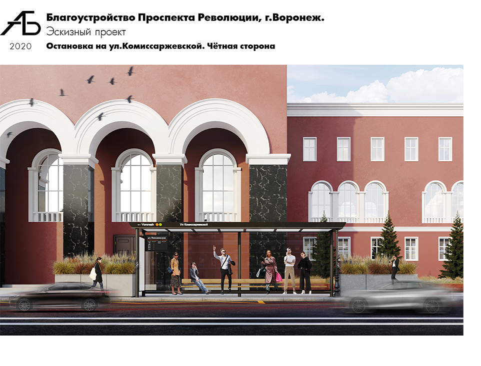 Планируется, что остановочные павильоны благоустроенного проспекта Революции будут современного образца.– Внешний вид остановок предлагается с учетом пожеланий общественников и предусматривает устройство подлокотников, спинок, выделение пространства для размещения коляски. С обеих сторон вместо ограждения предлагается установка кашпо с озеленением. Это позволит избежать конфликта при движении пешеходов и велосипедистов, - отметила Екатерина Белоус.Далее обсудили представленные примеры малых архитектурных форм, предлагаемых к размещению вдоль пешеходной части проспекта.
