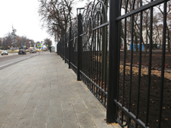 В парке обновлено ограждение: утраченные элементы воссозданы, полностью заменено основание. По периметру парка силами управы Центрального района завершается замена плиточного мощения, которое по формату соответствует стилистике парка. Планируется установка приствольных решеток тоже в единой стилистике с парком. Территория вокруг парка выполнена в соответствии с требованиями безбарьерной среды (с необходимыми понижениями и техническими зонами из мелкой брусчатки).