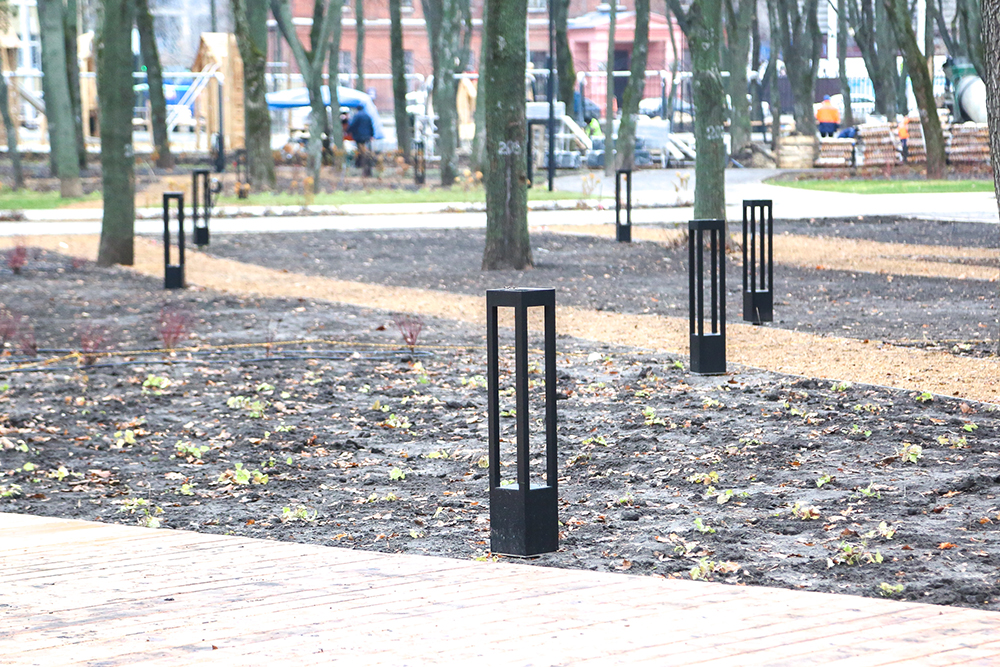 В «Орленке» уже готова планировочная структура общественного пространства (дорожки, плиточное мощение) и подготовлена инженерная инфраструктура (освещение, система полива).