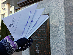 Старшеклассники из 13-й школы провели этот день на улице Кривошеина. Там, в рамках акции «Улицы Героев», они раздавали прохожим письма, стилизованные под фронтовые треугольники, в которых собственноручно описали подвиги прославленного земляка – генерал-лейтенанта Героя Советского Союза Семена Кривошеина.
