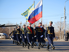 В завершении церемонии оркестр исполнил гимн Российской Федерации, а почетный караул прошел торжественным маршем.