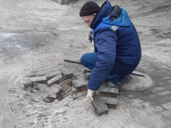 В настоящее время ведутся работы по замене брусчатки на тротуарной части возле библиотеки им. И.С. Никитина. Для подобных мероприятий на базе комбината благоустройства сформирован необходимый запас строительных материалов.