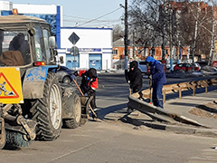 В Левобережном районе ведется ямочный ремонт дорожного полотна с помощью литого асфальтобетона, а также активно работает малая коммунальная техника «Бродвей» и «Магистраль» на уборке пескомёта с улично-дорожной сети.Сегодня на уборку улично-дорожной сети района вышло 42 единицы коммунальной техники и 62 специалиста ручной уборки МБУ «Комбинат благоустройства Левобережного района». В настоящее время ведутся работы по ручному сбору и вывозу пескосмета механизированным способом с основных магистралей района: Ленинского проспекта, Ленинградской, Брусилова, Новосибирской, Лебедева, Чернавской дамбы.