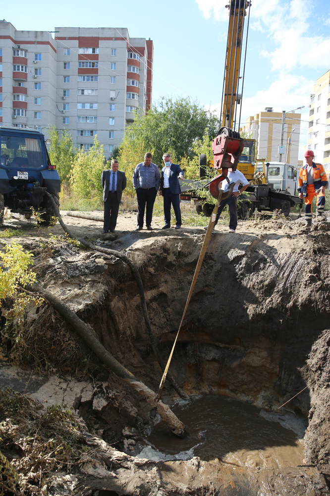 Мэр Воронежа лично контролирует ход работ по устранению утечки на водоводе на ул. Урывского (обновлено)