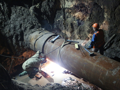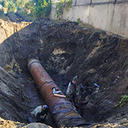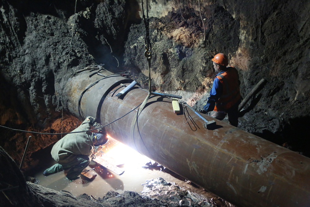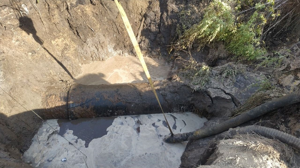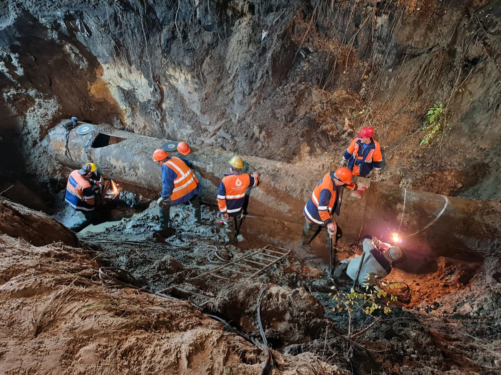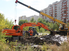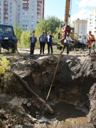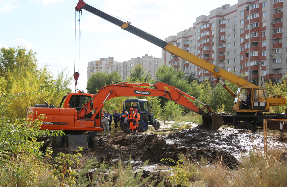 Напомним, утром 14 сентября диспетчерской службой РВК-Воронеж зафиксировано падение давления на контрольных точках водопровода в Левобережной части Воронежа.Бригады РВК Воронеж обнаружили причину падения давления на сетях (это утечка на трубопроводе диаметром 1000 мм в районе улицы Урывского) и провели необходимые технологические переключения на резервные линии. Был сформирован необходимый запас материалов, на объект доставлена спецтехника и оборудование. Глубина залегания водовода составляет порядка 4 метров. На объекте сейчас работают 10 единиц техники, в том числе мощный экскаватор с длиной стрелы 8 метров и стреловой кран грузоподъёмностью 16 тонн. Параллельно ведется откачка воды из котлована с использованием двух станций.