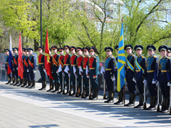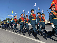 На плацу в Почетном карауле традиционно стояли курсанты Военно-воздушной академии имени Н.Е. Жуковского и Ю.А. Гагарина.