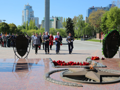 Ежегодно в преддверии 9 Мая горожане приходят к монументу, чтобы отдать дань уважения ветеранам той страшной войны и почтить память невинно убиенных женщин, стариков и детей, ценой жизни которых приближалась наша общая Победа. - Вечная память солдатам, не вернувшимся с поля брани. Они навсегда останутся в наших сердцах. Глубокая признательность и низкий поклон вам, дорогие ветераны. Тем, кому довелось живыми выйти из адского пламени сражений. Мы безмерно благодарны за ваш подвиг. Для нас большая честь жить рядом с вами. В этот знаменательный день примите самые теплые, самые искренние пожелания доброго здоровья, бодрости духа и оптимизма. Счастья вам, благополучия и мирного неба над головой! С Днем Победы! - обратился к присутствующим руководитель управы Советского района Олег Копытин.Минутой молчания почтили память всех погибших в годы Великой Отечественной войны. В заключение мероприятия прозвучала главная песня страны, гимн праздника 9 Мая – День Победы!